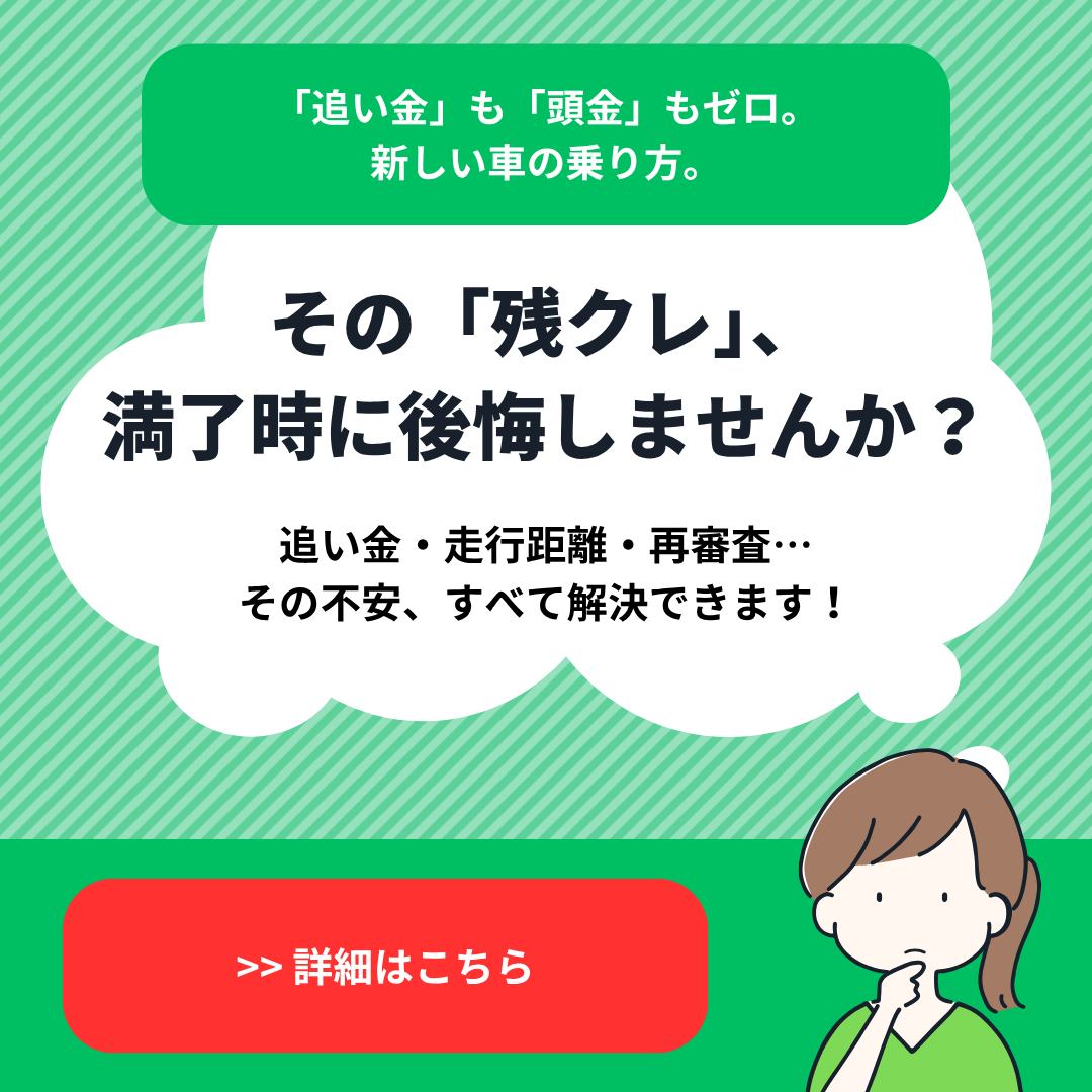 - カーリースは残クレの代替手段として、維持費込みで管理しやすい
